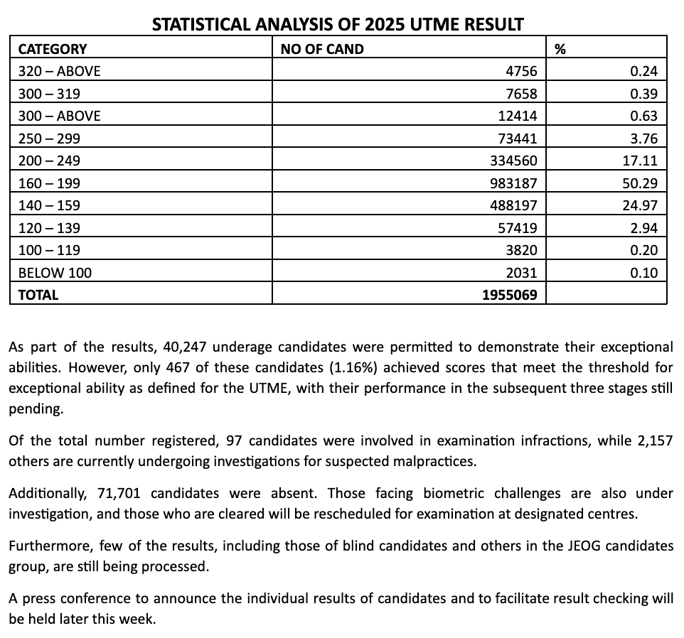 2025 JAMB UTME Results Are Out; The Joint Admissions and Matriculation Board (JAMB) has officially released the results for the 2025 Unified Tertiary Matriculation Examination (UTME). If you’re planning to gain admission into a Nigerian university, polytechnic, or college of education, this result is essential.