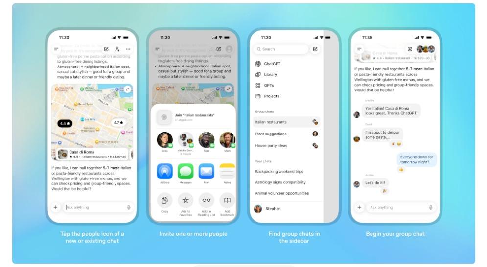 OpenAI on Thursday unveiled a group chat feature for ChatGPT, now being tested in select regions, including Japan, New Zealand, South Korea, and Taiwan. The new feature allows users to collaborate directly within the app.