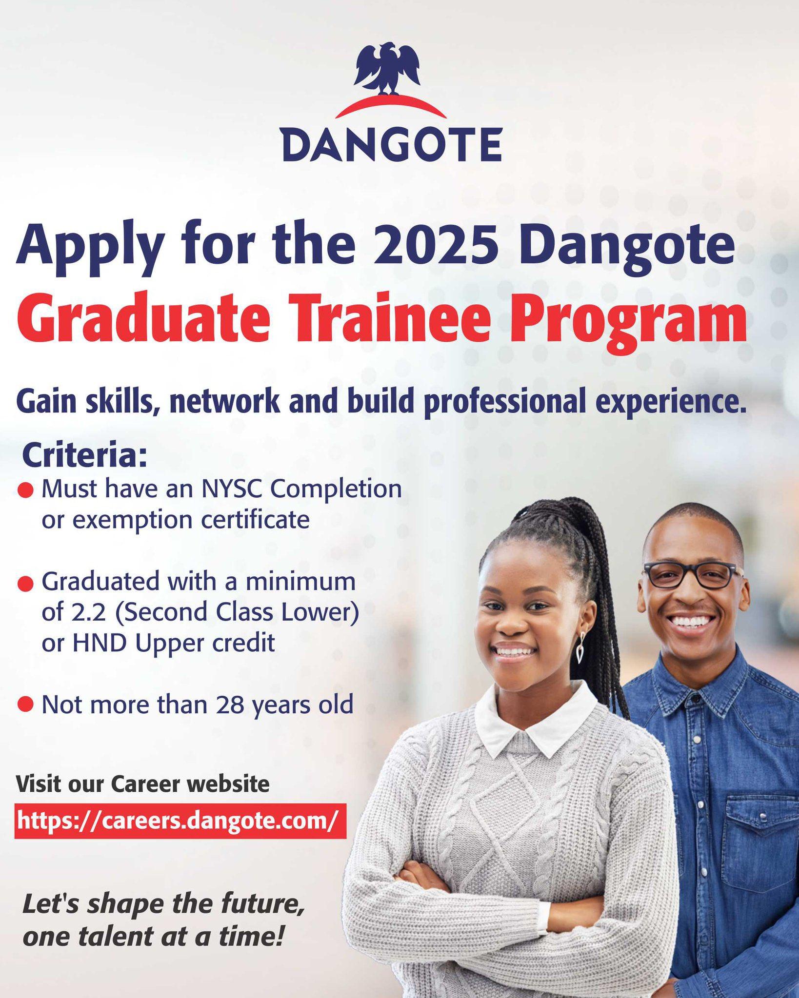 Student Village Academy › Forums › CAREERS AND JOBS › Vacancies › Dangote Is Hiring Multiple Graduates 2025