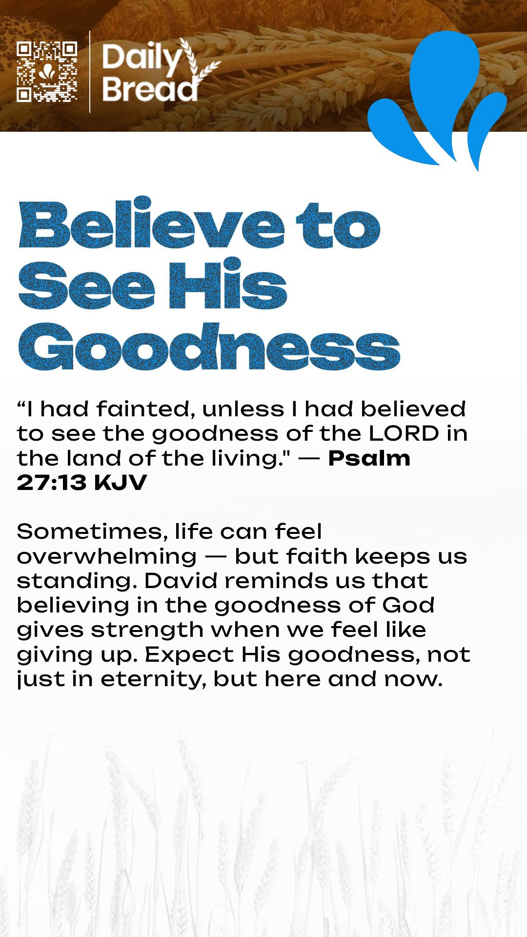 Lord, strengthen my faith today. Help me to believe in Your goodness even when circumstances tell me otherwise. Remind me that Your promises never fail and that I will see Your goodness in the land of the living. I choose faith over fear, hope over despair, and trust over doubt. In Jesus’ name, Amen.Declaration: