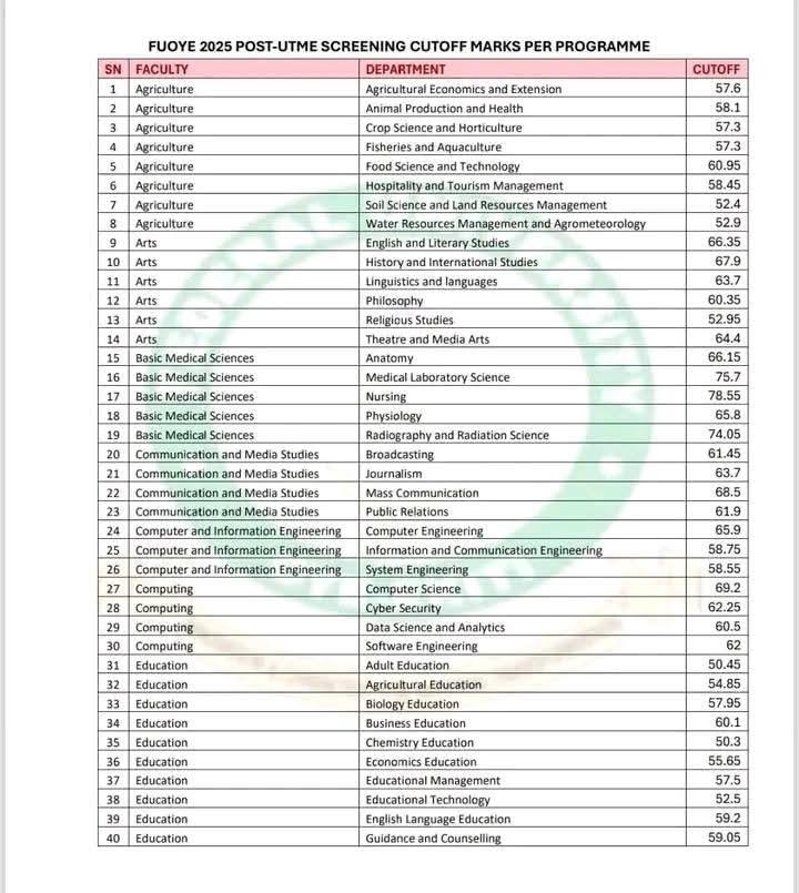 Student Village Academy › Forums › SCHOOL LIFE › University And Poly › FUOYE DEPARTMENTAL CUTOFF 2025