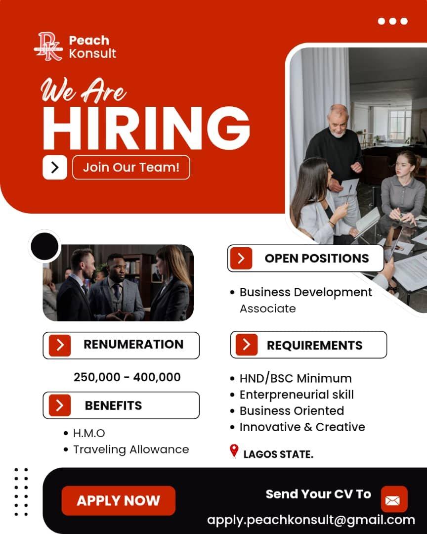 How to Apply: Interested and qualified candidates should send their CVs to: apply.peachkonsult@gmail.com