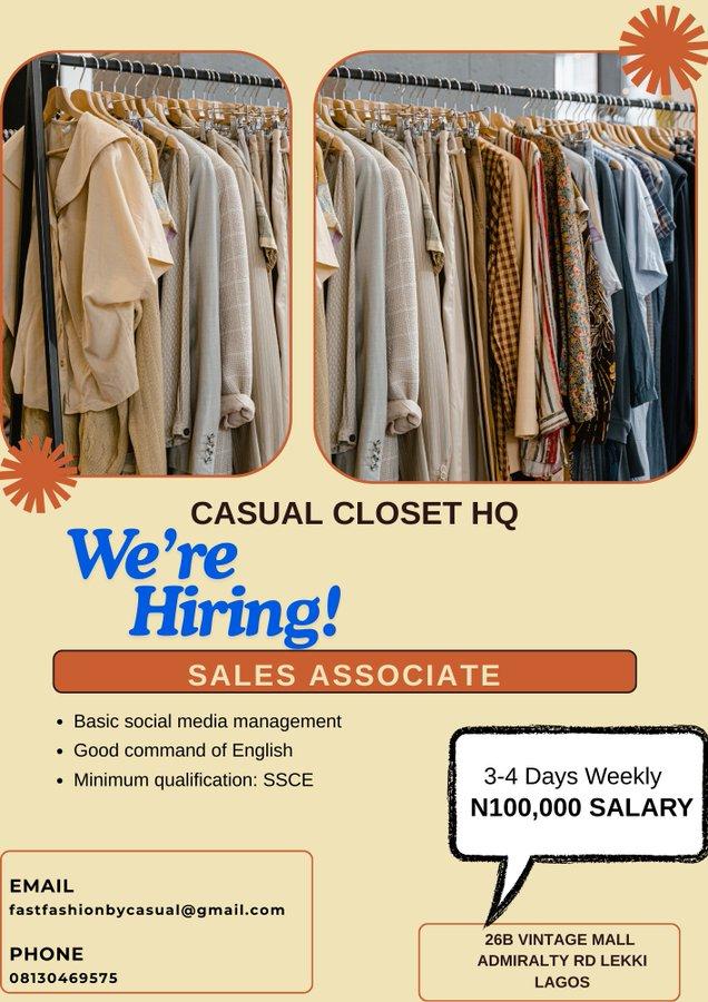 Location: 26B Vintage Mall, Admiralty Road, Lekki, Lagos Industry: Fashion / Retail Work Schedule: 3–4 days weekly Salary: ₦100,000