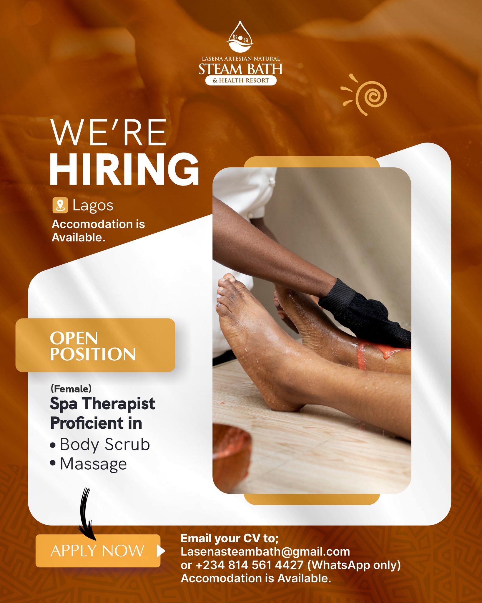 How to Apply Send your CV to: lasenasteambath@gmail.com Or apply via WhatsApp: +234 814 561 4427