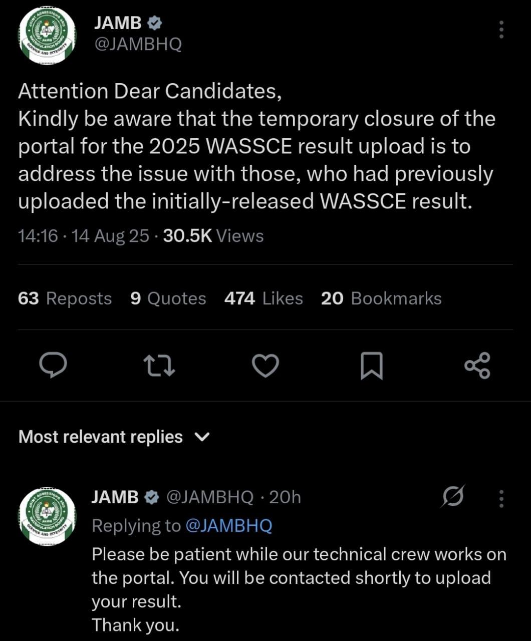 Student Village Academy › Forums › JAMB › JAMB Releases Statement About Halting Waec Result Upload