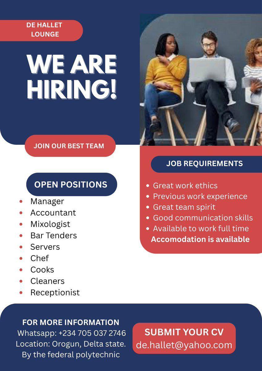 Student Village Academy › Forums › CAREERS AND JOBS › Vacancies › Multiple Hiring at De Hallet Lounge