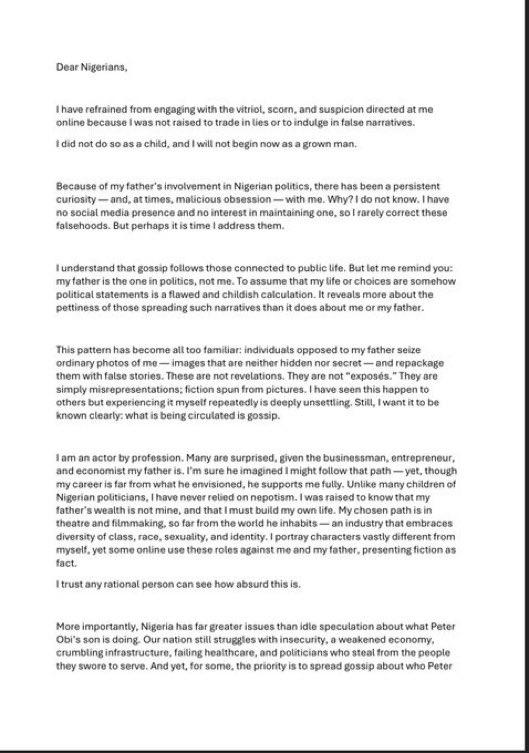 Student Village Academy › Forums › VILLAGE POLITICS AND CURRENT AFFAIRS › Local Politics › Peter Obi’s Son Responds To Critics