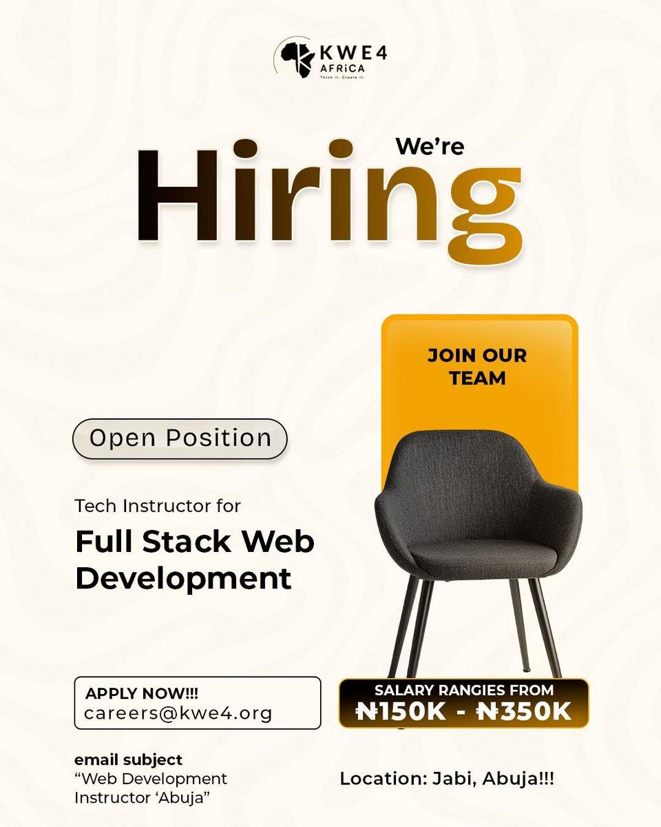Kwe4 Africa is seeking a Tech Instructor to train and mentor learners in Full Stack Web Development.