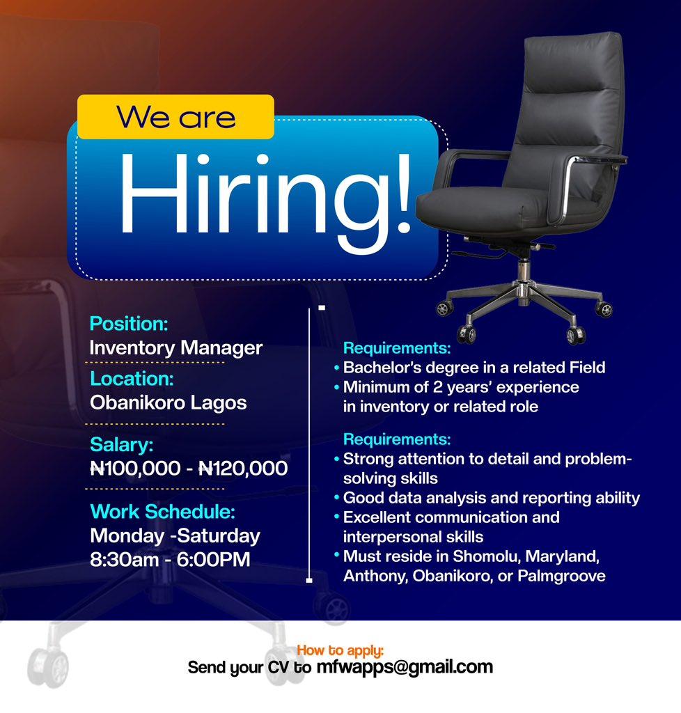 Vacancy: INVENTORY MANAGER Obanikoro lagos