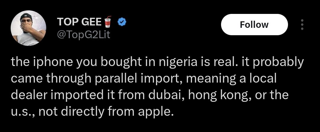 the iphone you bought in nigeria is real. it probably came through parallel import, meaning a local dealer imported it from dubai, hong kong, or the u.s., not directly from apple.