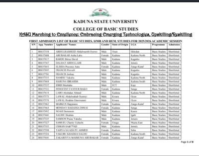 KASU Releases First Batch IJMB/Remedial Admission List for 2025/2026; This is to inform the general public, especially prospective IJMB students of Kaduna State University (KASU), that the management has officially released the first admission list of successful candidates for the 2025/2026 academic session.