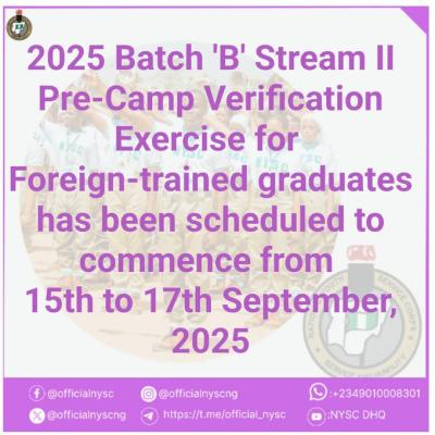 NYSC Notice to Foreign Trained Graduates for 2025 Batch ‘B’ Stream II Service Year