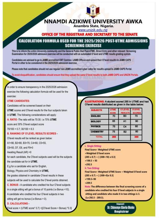 UNIMED Releases Post-UTME Screening Results for 2025/2026 Academic Session