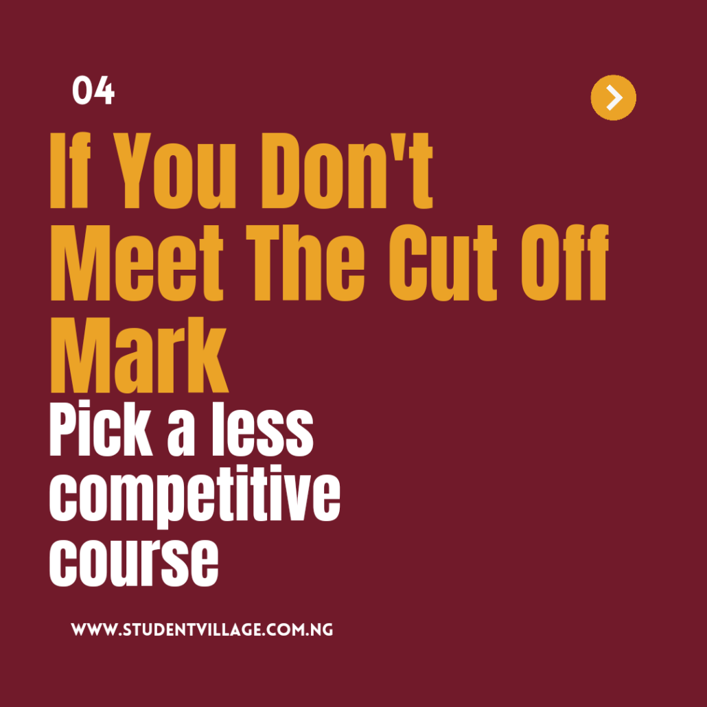 If you don’t meet the “above 11 points” mark but still want an easy admission process, consider switching to a less competitive course. If your preferred course has a high cutoff that you didn’t meet, purchase a change of course form from JAMB as soon as possible and switch to a less competitive option.