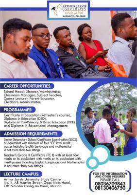 Arthur Jarvis University Releases 2022/2023 Diploma & Certificate; Applications are invited from suitably qualified candidates for Admission into Diploma & Certificate Programmes of Arthur Javis University.