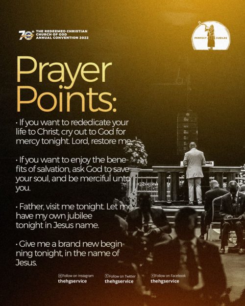 Prayer Points (Day2) RCCG Special Convention 2022. Perfect Jubilee.