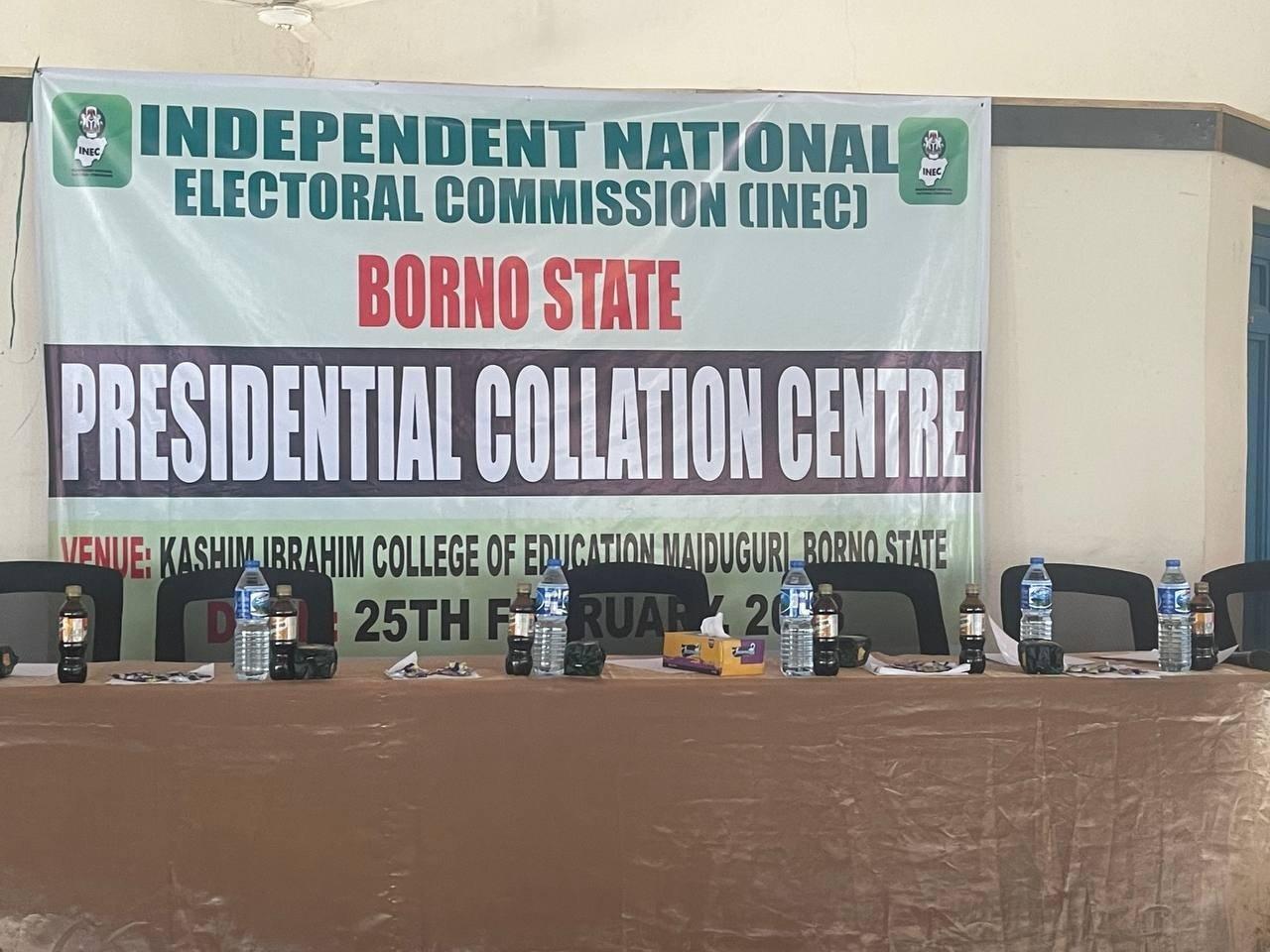 justseyiKeymasterThe collation of results is yet to start at the INEC centre in Maiduguri, Borno state. Muhammed Magaji, the INEC REC, postponed the exercise from 12 pm to 4 pm, to await the arrival of results from the 27 LGAs.