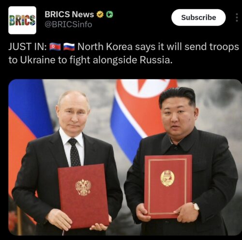 justseyiKeymaster🇰🇵 🇷🇺 North Korea to send troops to Ukraine to fight alongside Russia.