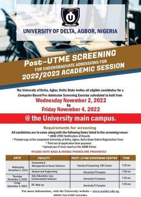 UNIDEL Post-UTME 2023: cut-off mark, eligibility, and registration details